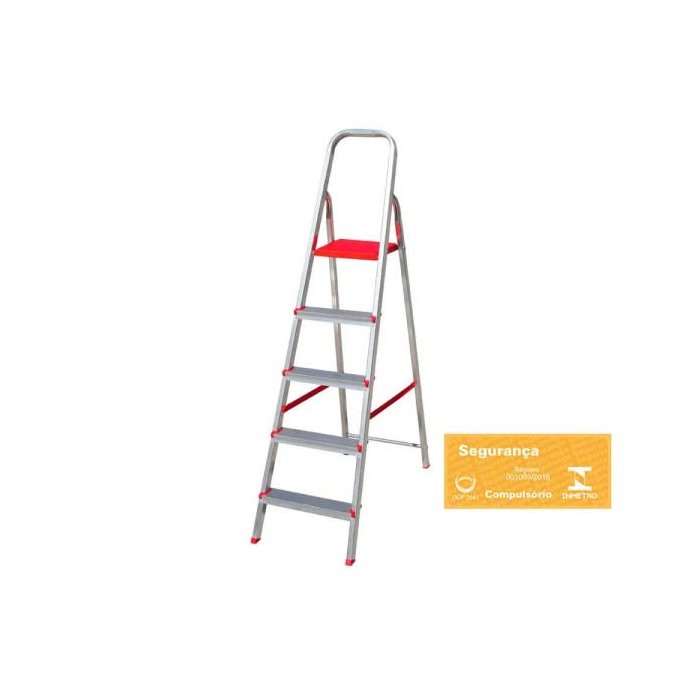 | Benefícios do Produto | A escada de alumínio Botafogo 5 degraus é leve e resistente, indicada para o uso exclusivo doméstico <br> Com ela, você consegue alcançar prateleiras, armários e outros locais mais altos em sua casa <br> Material 100 por cento reciclável, o que mostra o comp |