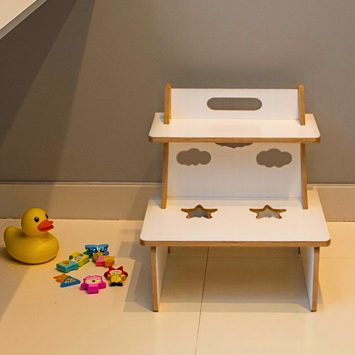 Com cantos arredondados e pegador anatômico, a escadinha é ideal para várias atividades rotineiras, possibilitando uma experiência divertida e segura a criança.