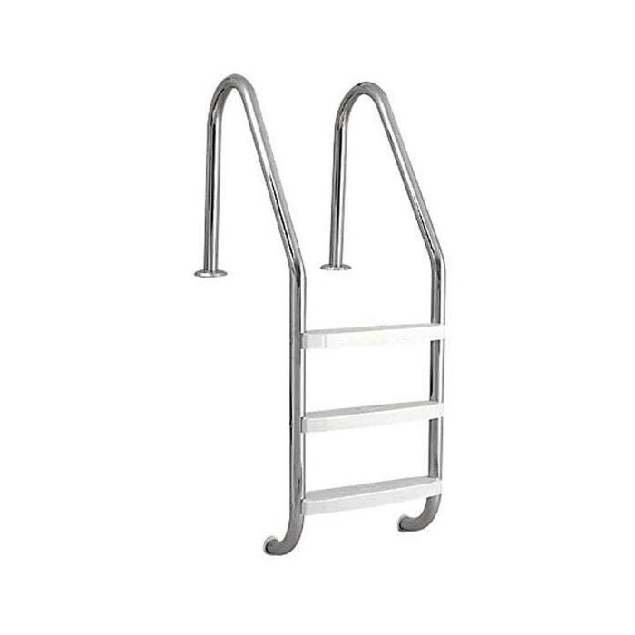 A escada Jauzzi 3LB 3 degraus possui corrimãos em aço inoxidável polido espelhado e degraus em ABS branco, formando um conjunto à prova de corrosão que complementa a beleza da piscina e proporciona um meio fácil e seguro de entrar ou sair da água. Esta escada Jacuzzi com três degraus é fornecida com espelhos terminais cromados, e protetores para apoio dos corrimãos na parede da piscina.