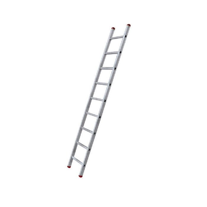 Escada feita de aluminio, o que lhe confere extrema leveza e resistencia. Sendo indicada para servicos em geral, podendo ser utilizada apenas encostada em superficie vertical como muro ou parede. Possui sapatas antiderrapantes, degraus mais largos e sua carga maxima de trabalho e de 150 Kg.