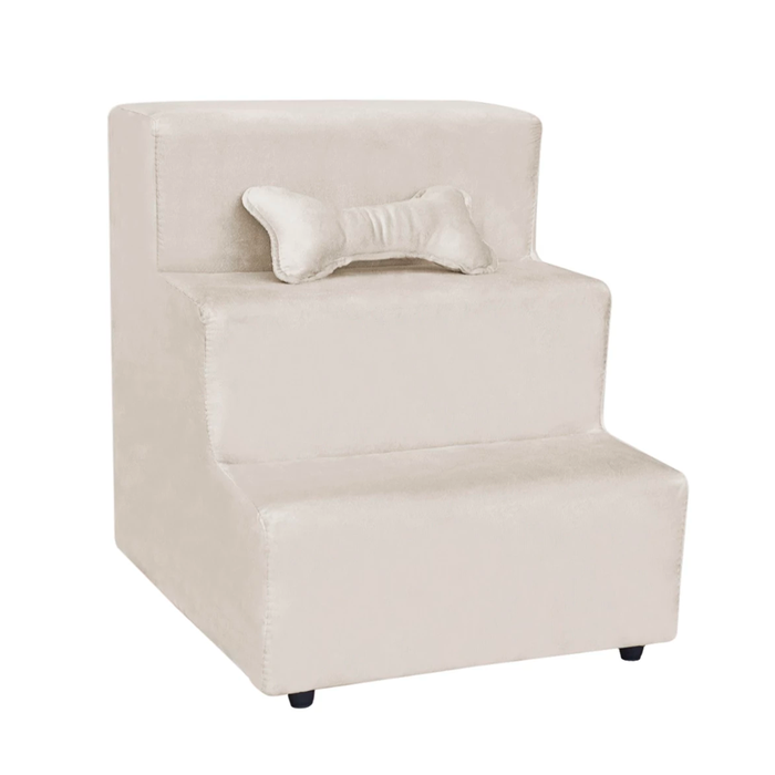 Escada Pet Almofadada 3 Degraus para Cães e Gatos Veludo Bege
