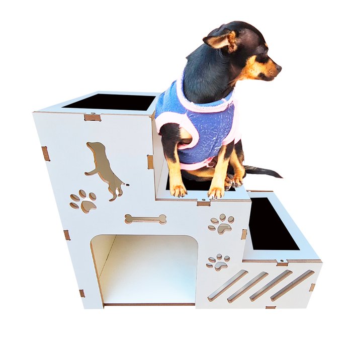Escada Pet para Cachorro e Gato com 3 Degraus e Toca em Mdf