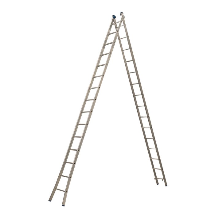 Escada Profissional Extensiva 2X15 Degraus. Feita em alumínio de alta resistência, a Escada Profissional apresenta o máximo de durabilidade e segurança. Ideal para ambientes externos e com exposição de sol e chuva, pode ser utilizada em instalações de antenas, manutenções telefônicas, poda de árvores, locais de difícil acesso, entre outros. Capacidade até 120kg . Estendida 27 degraus . Aberta 30 Degraus , 15 em cada lado.