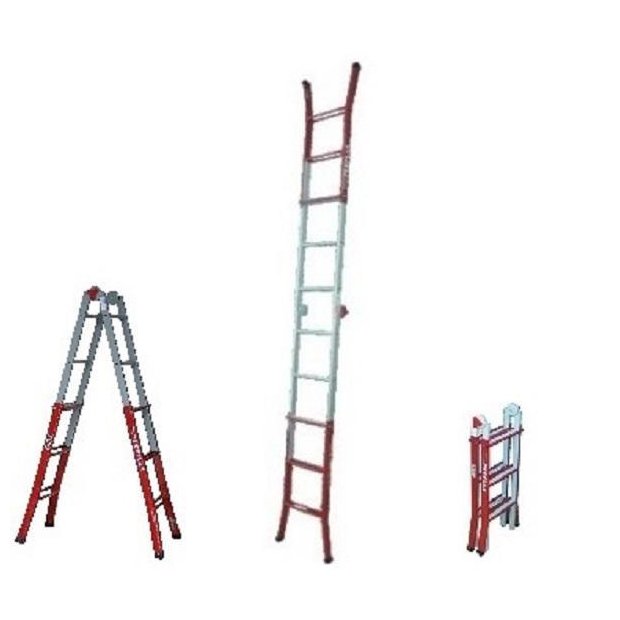 Escada telescópica articulada de aço Abre, estende e pode ser transformada em andaime utilizando um prolongamento opcional - Compacta, cabe no porta malas do carro, motocicleta ou dentro do elevador - Fabricada de aço carbono com pintura epóxi super-resistente - Destinada principalmente ao uso profissional intenso - Versátil e resistente, atende ao uso profissional, comercial e industrial - Escada de aço conduz energia Acessórios - Sapatas de borracha antiderrapantes - Bandeja para apoio de ferramentas adaptável no topo da escada para quando usada na posição cavalete