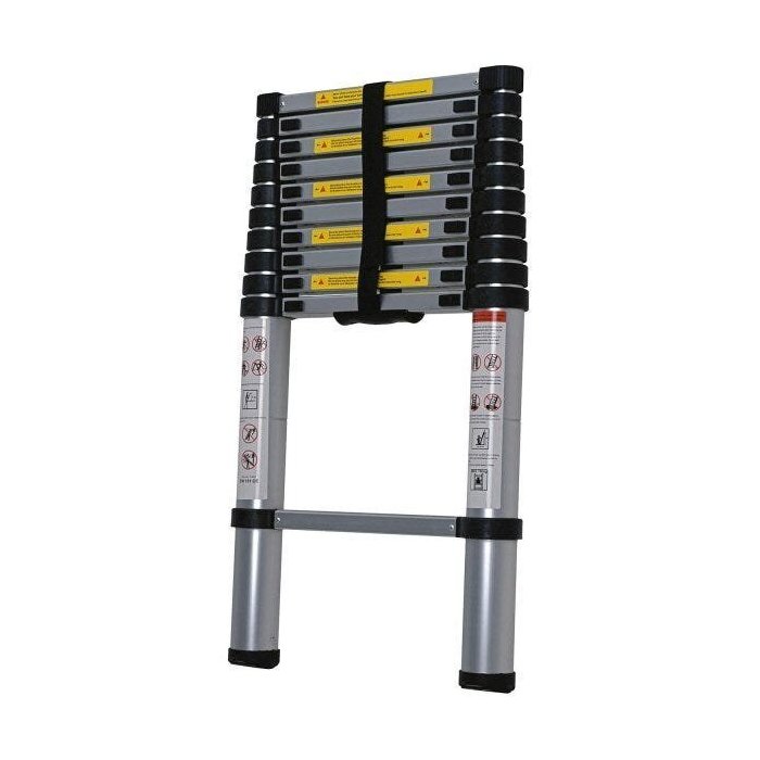 Escada telescópica de alumio material resistente; fácil armazenagem; uso prático e rápido; uso interno e externo ; maior durabilidade; maior leveza; sapata de borracha; sistema de segurança com travas