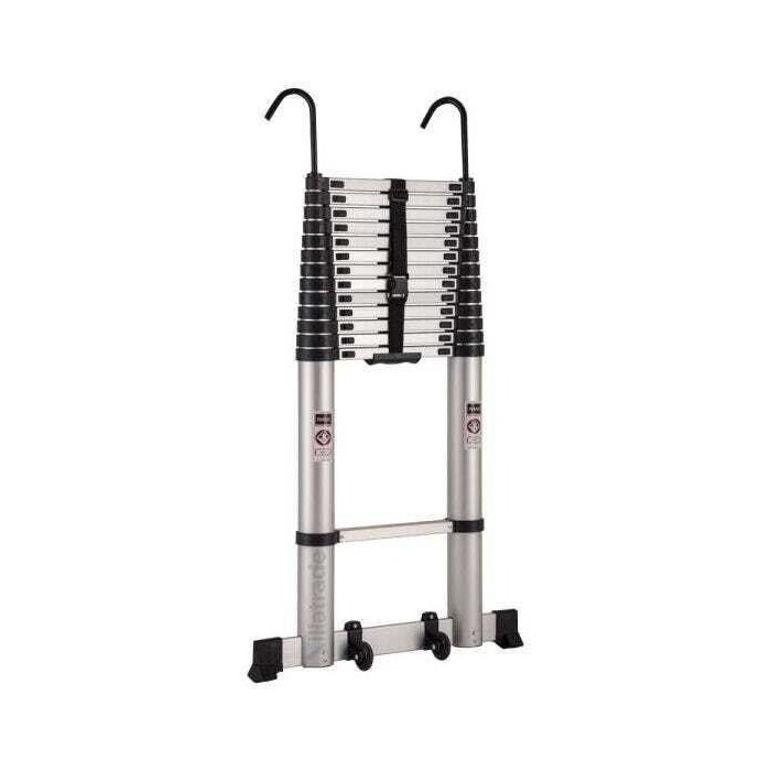 Escada Telescópica em Alumínio Multifuncional - 5,50 mt e 14 Degraus Totalmente Estendida