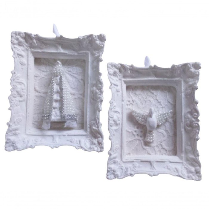 Aplique de Nossa Senhora e Divino.