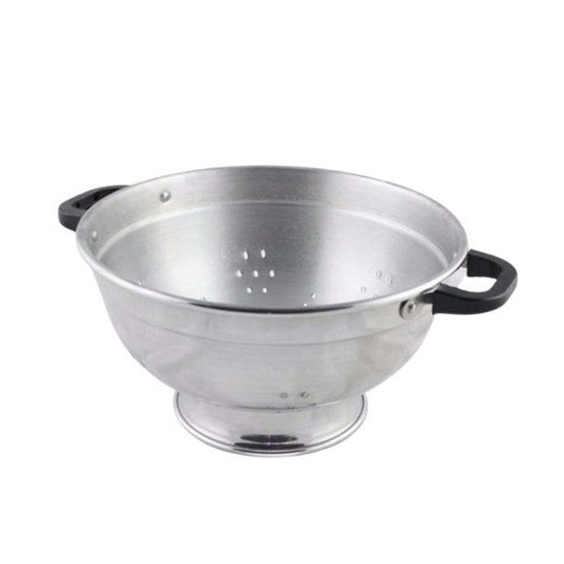 O escorredor de alumínio é ideal para te ajudar na hora de preparar aquele almoço ou jantar especial. Essencial para você escorrer os alimentos, macarrão, arroz, verduras... o que você quiser. Revestido em alumínio de alta resistência com alças em baquelite antitérmico, para dar mais segurança no manuseio.