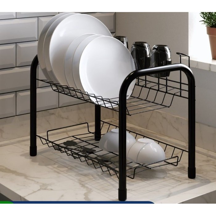 Escorredor de Louça Duplo 11 Pratos 5 Copos Porta Talheres preto