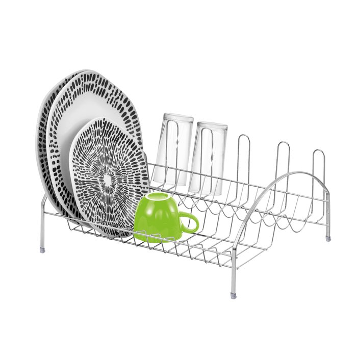 Escorredor de louças fabricado em aço cromado, material conhecido por sua durabilidade e resistência. O produto tem capacidade para até 12 pratos e 05 copos, tendo dimensões ideais para comportar suas louças com mais praticidade e higiene. Invista em organizadores e outros utensílios que tornam o espaço gourmet dinâmico e funcional. Observação: os demais itens na imagem são ilustrativos e não acompanham o produto.