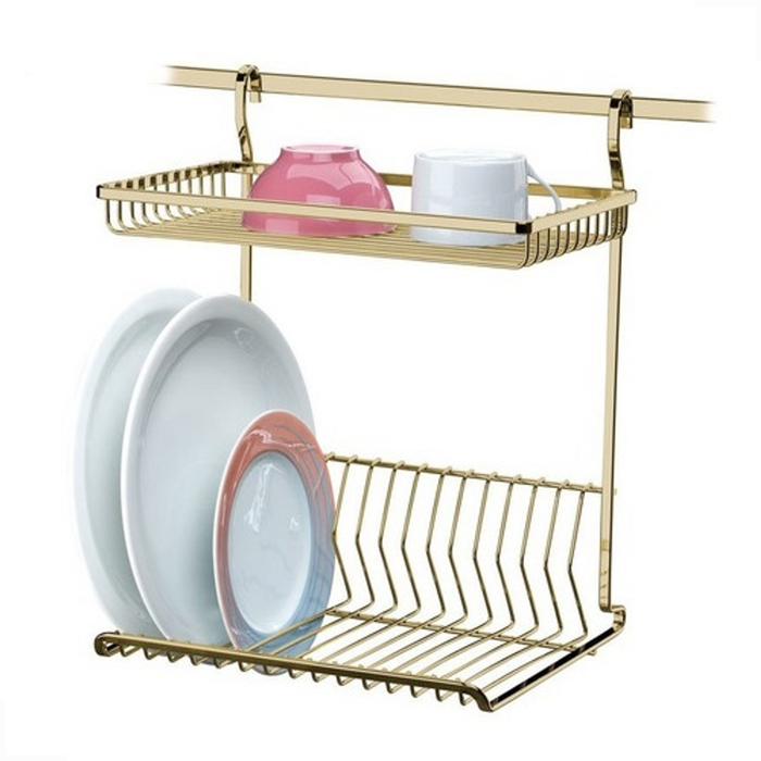 Escorredor de Louça Parede Pratos Talheres Copos Cozinha Dourado