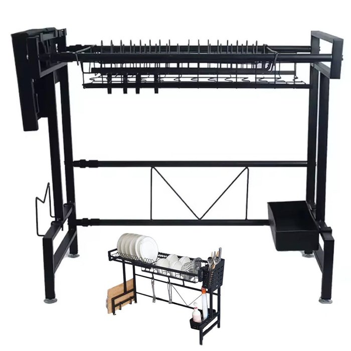 Escorredor de Louça Pia Cozinha Modular Suspensa Ajustavel Prato Tigela Talheres Utensilios Organiza Preto