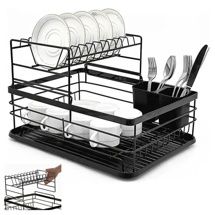 Com design moderno e estrutura compacta, é perfeito para otimizar espaços na bancada ou pia, mantendo tudo organizado. Fabricado em aço com pintura epóxi em pó, oferece alta resistência, durabilidade e acabamento elegante em preto fosco.