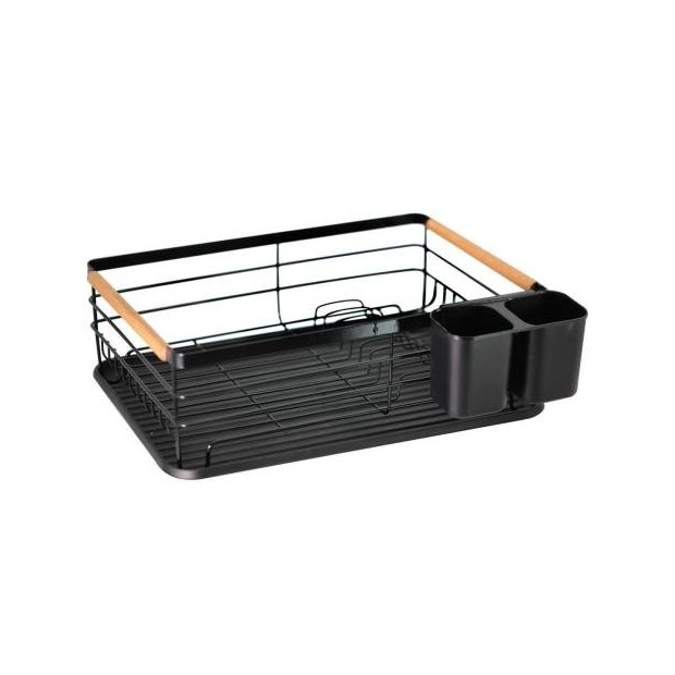 Escorredor De Louça Prato Talher Metal Madeira 43x32cm Cesto Yangzi