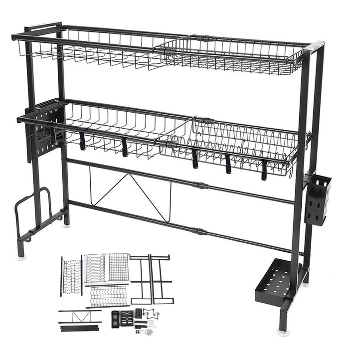 Escorredor de Louça Suspenso Modular 2 Andares Pia Bancada Cozinha Comprimento Ajustavel Copo Prato Preto