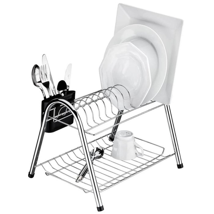Escorredor de Louças 2 Andares Aço Cromado Secador de Pratos Talheres Copos Cozinha Utimil