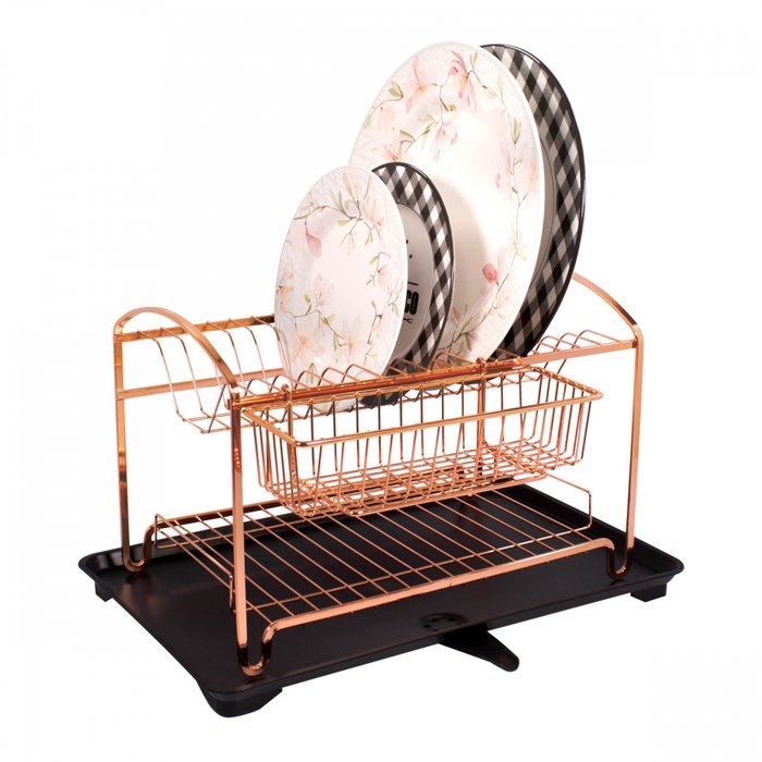 • 01 Escorredor de Louças Duplo Capacidade Para 16 Pratos Cobre, 01 Bandeja Coletora de Água