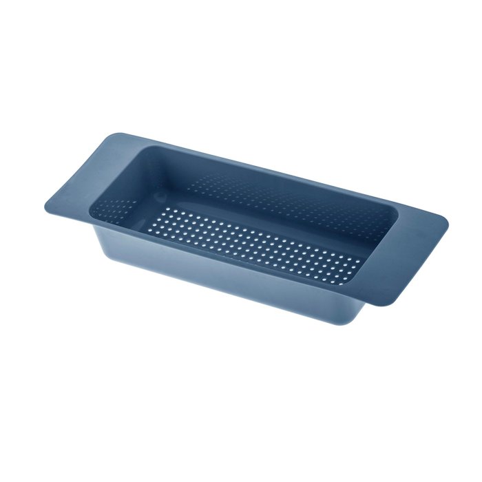 Encaixa na cuba da pia para facilitar o uso. Pode ser utilizado para lavar e separar alimentos e saladas. Pode servir como escorredor de talheres e copos.