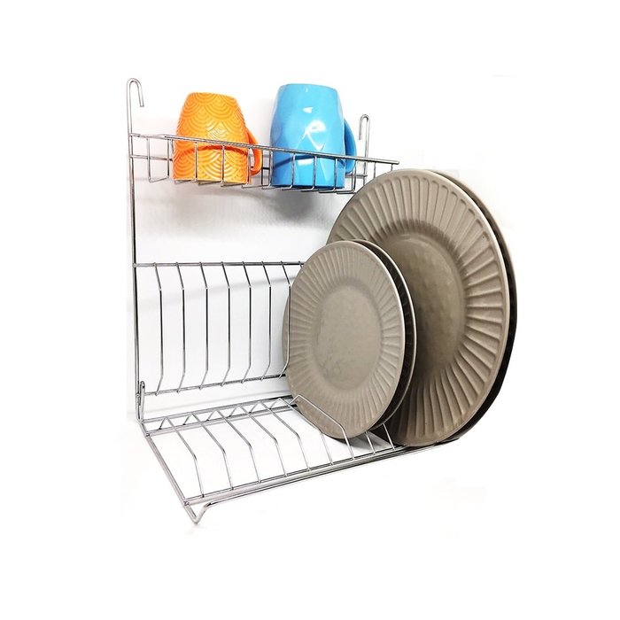 Escorredor de Pratos Parede Para 10 Pratos e Copos Aço Cromado Dobrável - Mundial Import