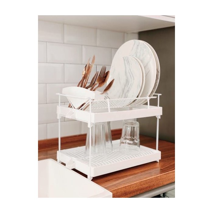 Para quem tem muita louça e pouco espaço na pia, esse modelo de 2 andares é o Escorredor ideal! Design moderno que oferece praticidade para o dia a dia e dá um charme todo especial para sua pia. A base oferece a possibilidade de cada pessoa decidir a altura para os Aramado escorrerem as louças. É possível deixá-lo mais alto com a ajuda das hastes/abas, ideal para a hora dos pratos. Como também é possível deixá-lo totalmente abaixados, ideal para a hora das panelas e copos. A ideia é versatilidade: um escorredor que se adapta à sua louça daquele momento. O escorredor possui base coletora para que nenhuma água fique parada, fazendo com que os pratos sequem com mais agilidade. Com isso há uma maior conservação do organizador, que não sofrerá com os danos que a umidade pode causar, como proliferação de bactérias, fungos e acúmulo de sujeiras.