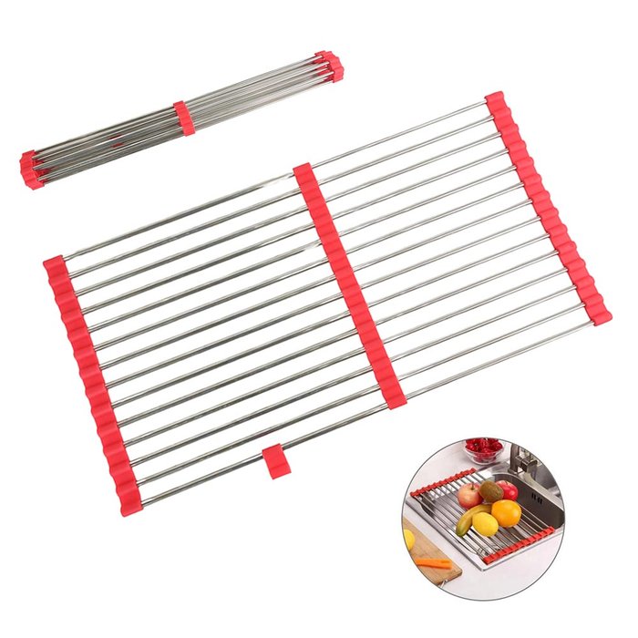 Escorredor Esteira Inox Extensivo Silicone Cozinha Pia Cuba Prato Louça Panela Dobravel Compacto Pra Vermelho