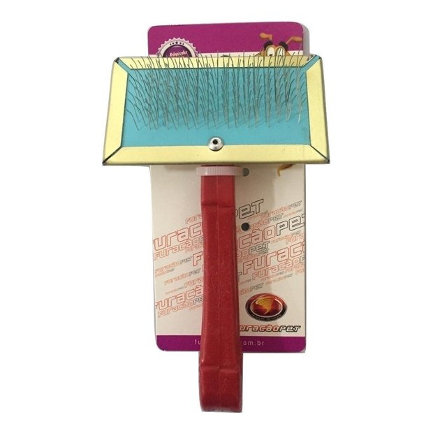 Escova Cerdas de Aço - Furacão Pet Tudo para seu cãozinho. Sabe-se que os pelos dos cachorros precisam ser escovados, pelo menos, uma vez por semana. Mas se você não tem tempo de levar sempre ao veterinário, então, tenha em casa esta escova. Ela apresenta cerdas de aço, para um desembraço melhor dos pelos, sendo bastante resistente, mas sem machucar o animalzinho. Vem com cabo para um manuseio mais firme. Imagens Meramente Ilustrativa Características do produto Dimensões do produto: Largura: 9,00 cm Comprimento: 16,00 cm