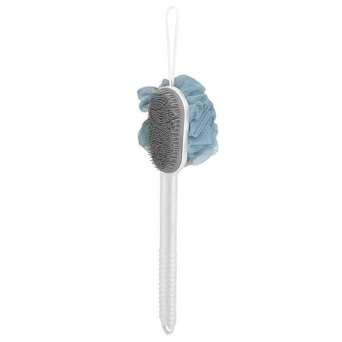 Escova de Banho 2 em 1 Espoja + Escova Silicone Cinza Claro 38cm