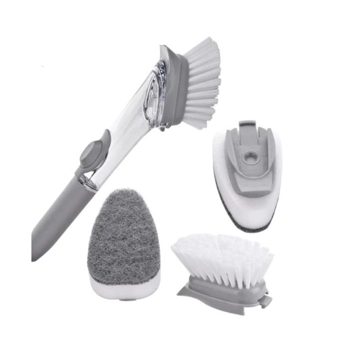 Escova Dispenser De Limpeza 2 Em 1 Esponja Detergente Sabao Liquido Limpa Cozinha Lava Louca Multius Cinza