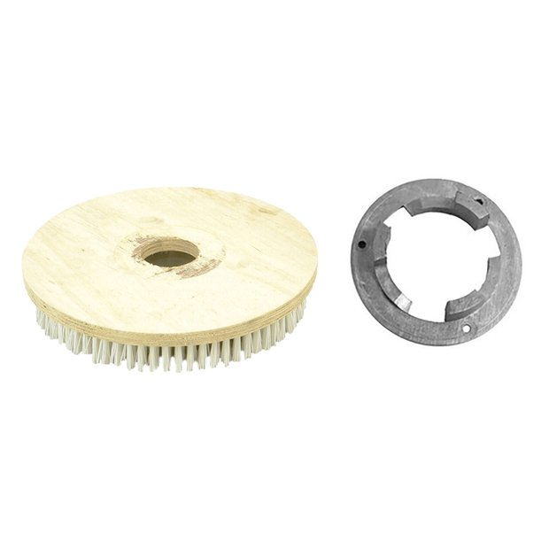 Escova de Nylon sem Flange e base de madeira e cerdas de Nylon, ideal para lavar e para uso em pisos irregulares. Ideal para limpeza pesada e pós-obra. Para Lavagem de Pisos. Escovas para uso em enceradeiras e lavadoras em tarefas de tratamento de pisos. Aceita diversos tipos de flanges plásticas ou de metal.