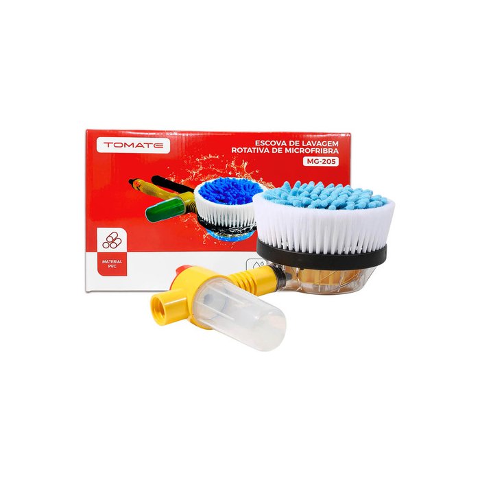 A Escova de Lavagem Rotativa é a ferramenta ideal para uma limpeza eficiente e prática. Com fácil encaixe na mangueira, ela gira automaticamente com a pressão da água, garantindo uma lavagem completa. A escova é feita em Veludo Chenille (Microfibra), proporcionando uma limpeza delicada sem arranhar as superfícies. Possui um dispenser de sabão embutido com dosador e um registro para controlar a pressão da água, evitando vazamentos. Com três ajustes de velocidade e 100cm de comprimento, essa escova oferece versatilidade e eficiência para todas as suas necessidades de limpeza.