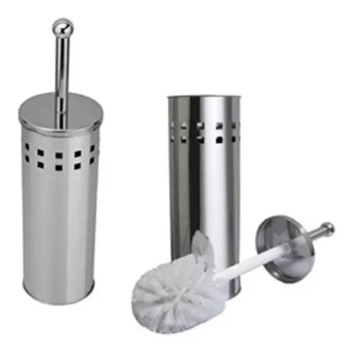 ESCOVA SANITARIA EM INOX LIMPA VASO BANHEIRO PARA PRIVADA COM SUPORTE LUXO Prata