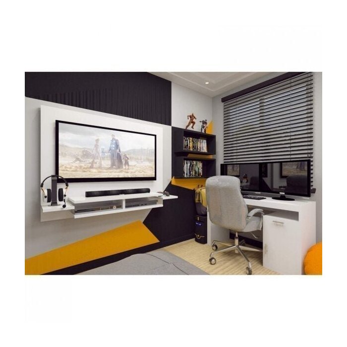 Escritório com Escrivaninha e Painel para TV até 55 Polegadas Bill Espresso Móveis Branco