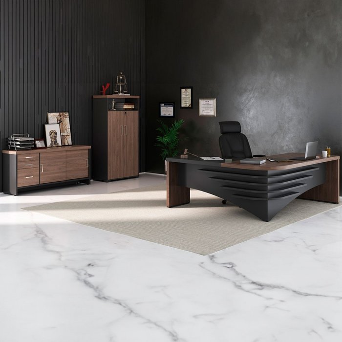 Descrição:O(a) Escritório Completo Deputado 4 Portas 3 Gavetas Charuto/Preto - Pnr Móveis é produzido em MDP na escala de brilho Semi-Fosco, e possui um grau de dificuldade de montagem: Médio.Seu revestimento/acabamento é: Chapa em BP.Infelizmente a Loja não oferece serviço de montagem, deixamos essa informação bem clara em todas as nossas páginas de produto. Onde especificamos que os móveis chegarão desmontados, e que a montagem fica por conta do cliente.Como não oferecemos esse serviço não embutimos o mesmo no preço dos produtos, ou seja, maior economia para você! Todos os nossos móveis também acompanham o manual de montagem, e caso você queira, pode realizar a montagem você mesmo, sempre especificamos os graus de montagem dos produtos.Nos casos de grau baixo e médio, com pouco ou nenhum conhecimento, você mesmo pode efetuar a montagem, e fazer essa economia. Apenas nos graus de montagem alto, recomendamos a contratação de um montador com experiência, visto que são montagens mais complicadas. A montagem é feita com Parafusos, cavilhas e Minifix..Este móvel é indicado para que seja utilizado no(a) Escritório, dando um toque especial no cômodo de sua casa.Para que você mantenha seu produto sempre em ótimo estado, recomendamos que use apenas um pano seco ou levemente umedecido, sem o uso de quaisquer produtos abrasivos.A Loja garante aos clientes, 90 dias de garantia nos produtos, porém, recomendamos que entre em contato com o fornecedor/marca do produto, pois o mesmo(a), pode garantir uma data maior de garantia.Lembrando ainda que: quaisquer objetos decorativos que aparecem nas imagens, não acompanham o produto.Características:- Material da Estrutura: MDP- Como os Móveis Chegarão na Minha Casa: Desmontado em caixas, acompanhado de todas as peças, ferragens e manuais para montagem.- Grau de Dificuldade da Montagem: Médio- Sistema de Montagem: Parafusos, cavilhas e Minifix.- Observação: Objetos decorativos que aparecem nas imagens, não acompanham o produto.- Recomendação de Manutenção: Utilizar pano levemente umedecido, seguido de pano seco. Não utilizar quaisquer produtos abrasivos.- Indicação de Uso: Escritório- Garantia (dias): 90- Material do Tampo: Tamburato- Escala de Brilho: Semi-Fosco- Acompanha: Armário para escritório, Mesa para escritório, Balcão para escritório, Kit Ferragens e Manual de Montagem- Quantidade de Pés/Sapatas: 13- Material do Trilho: Metálica- Possui Borda de PVC nas Bordas?: Sim- Espessura do Tampo (mm): 50- Quantidade de Gavetas: 3- Formato da Mesa: Formato em "L"- Revestimento /Acabamento: Chapa em BP- Quantidade de Portas: 4- Tipo de Porta: Portas de Bater e Portas de Correr- Quantidade de Gavetas: 3- Peso Suportado nas Gavetas (Kg): 5 Kg- Material das Corrediças: Metálica- Material das Dobradiças: Metálica- Material do Puxador: Metal- Espessura da Estrutura: 15mm, 18mm, 25mm, 50mm- Tipo da Corrediça: Telescópica- Material da Porta: MDP- Espessura da Porta: 18 mm- Quantidade de Prateleiras: 4- Peso Suportado nas Prateleiras:: 5 Kg- Linha ou Coleção: Deputado- Montagem Invertida?: Não Pode ser Montado Invertido- O que compõe: Armário para escritório: 173 x 89,5 x 44 CmMesa para escritório: 75 x 200 x 180,5 CmBalcão para escritório: 75 x 200 x 180 Cm- Material dos Pés: Plástico- Necessita de Montagem: Sim- Pés com regulagem de altura?: Sim- Possui Sapatas?: Sim- Possui Vidro: Não- Pode Ser Montado Invertido: Não- Possui Rodízios?: Não- Possui Espelho?: Não- Possui Vidro?: Não- Possui Gavetas?: Sim- Possui Portas?: Sim- Possui Prateleiras?: Sim- Possui Puxadores?: Sim- Possui Pés?: Sim- É frágil?: Não- Possui Ripamento?: Não- Possui Chave?: Sim- Acompanha Manual de Montagem: Sim- Possui Nicho?: NãoDimensões:- Altura: 100,00 cm- Largura: 100,00 cm- Profundidade: 100,00 cm- Peso: 224,000 kg