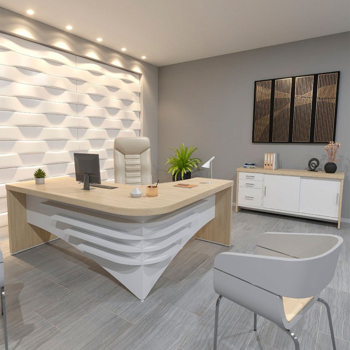 Escritório Completo Executiva Tamburato 2 Portas 3 Gavetas Branco/Carvalho - Artany Móveis