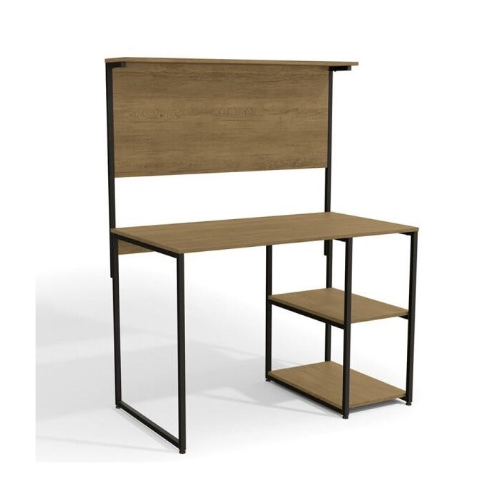 Escrivaninha 1,40m C/prateleiras e Painel Estilo Industrial Kappesberg Crome - Freijó/preto Fosco