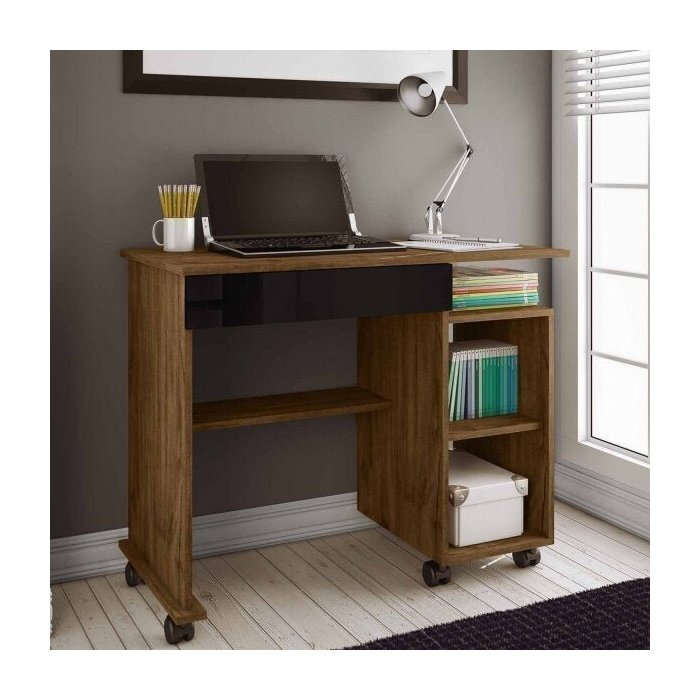 Escrivaninha 1 Gaveta e Rodízios C214 Dalla Costa Nobre/Preto Brilho