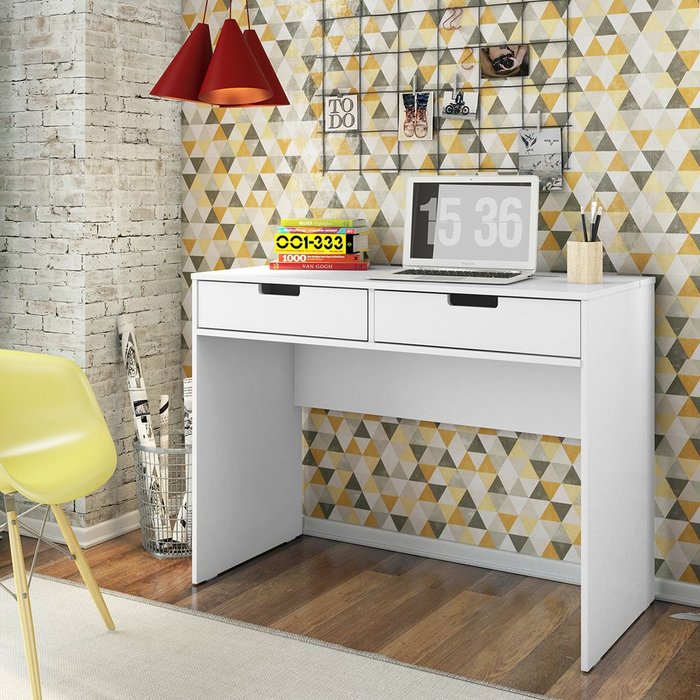 Escrivaninha 103cm 2 Gavetas New Escritório Branco