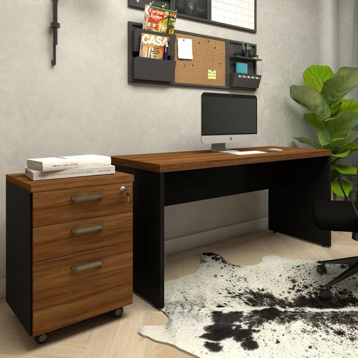 Escrivaninha 150cm com Gaveteiro 3 Gavetas Escritório F5 Cor:nogal com Preto