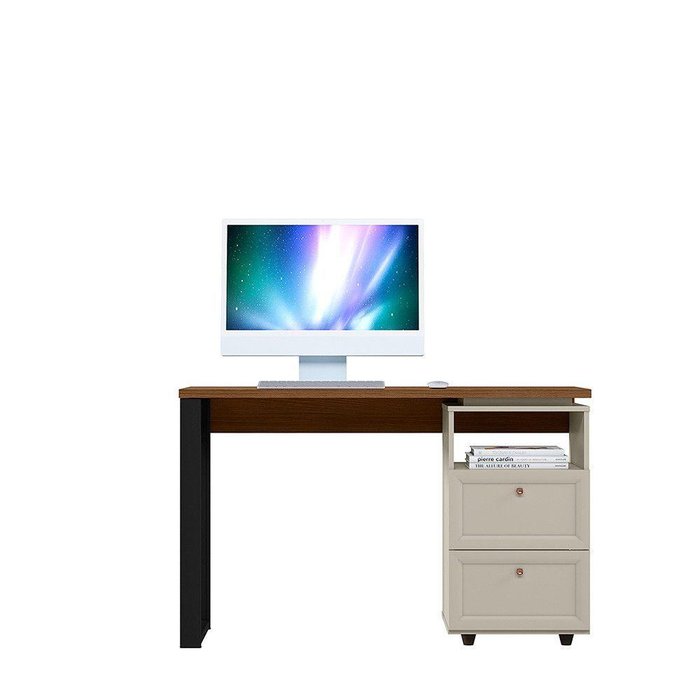 Escrivaninha 2 Gavetas Design 1.2 Pé Em Mdf Linea Brasil Freijo/off White Off White