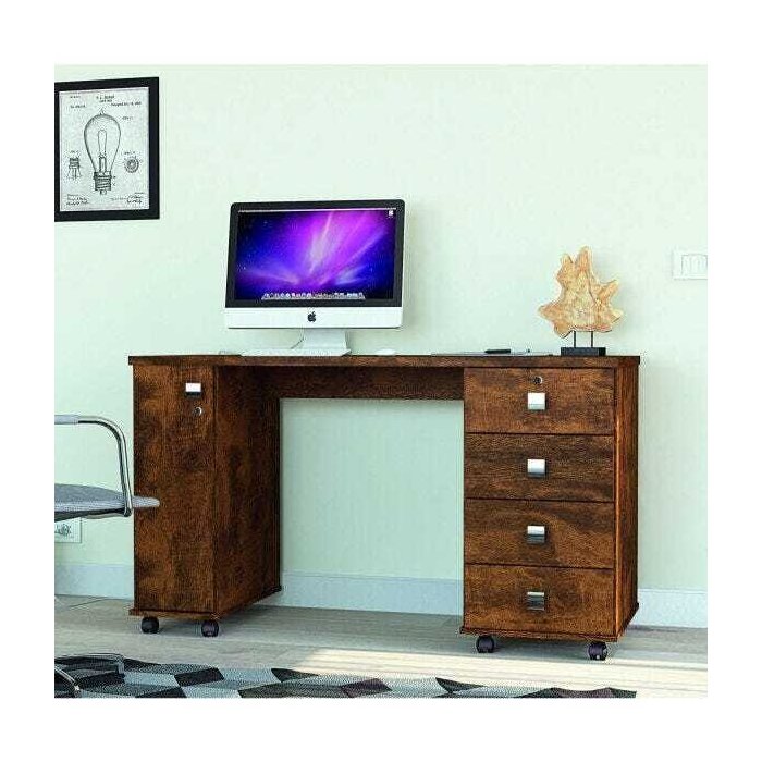 Escrivaninha 4 Gavetas e Rodízios Office Smart Canela Canela