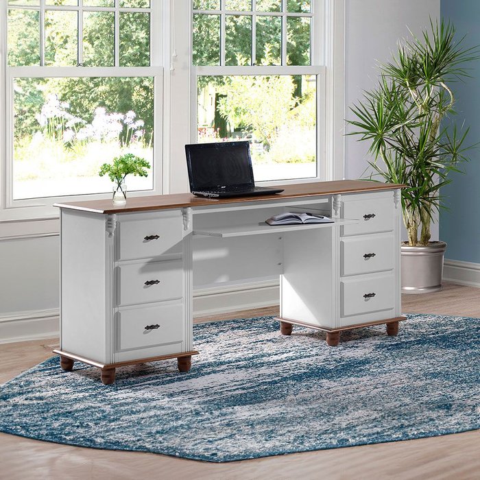 Procurando uma escrivaninha com gavetas para o seu escritório ou home office? A Escrivaninha Linz Office é a escolha ideal, pois com seu amplo tampo em madeira maciça, 6 gavetas com corrediças telescópicas, você terá espaço de sobra para armazenar papéis, canetas e outros materiais de escritório. Além disso, possui suporte para teclado, permitindo uma superfície de trabalho mais ampla e confortável e detalhes divisores de ambiente. Os pés e base em madeira maciça e puxadores metálicos dão um toque de elegância e requinte ao móvel. Produzida em Madeira Maciça para tons amadeirados em verniz e MDF nos tons coloridos com acabamento laca, garantindo qualidade e durabilidade, para que você possa aproveitar ela por muitos anos. A escrivaninha retro é uma excelente escolha para quem procura exclusividade, sofisticação e requinte.