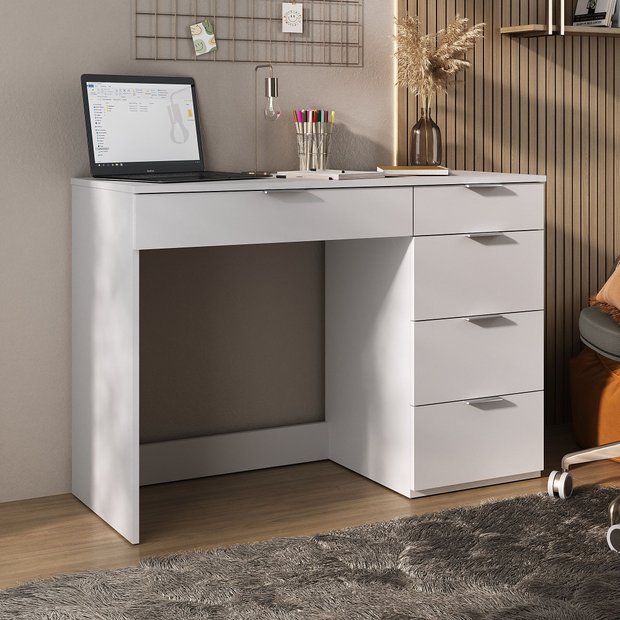 A escrivaninha 5 gavetas Foscarini é uma ótima solução para quem busca criar um cantinho de estudos, lazer ou um home office prático e funcional. Sua base comporta perfeitamente a tela do computador, teclado e alguns objetos de uso diário para o escritório. Compacta e moderna combina facilmente com diferentes estilos de decoração. Conta com 5 gavetas espaçosas com corrediças telescópicas de deslize suave a abertura total. Desenvolvida com processos de alta qualidade, ela é fabricada em 100% BP, com estrutura firme em 15mm e acabamento BP resistente a umidade, riscos e machas. Seu sistema de montagem é rápido e descomplicado realizado através de parafusos, minifix e cavilhas. Puxadores modernos em alumínio. Ideal para renovar seu escritório e organizar seus objetos.