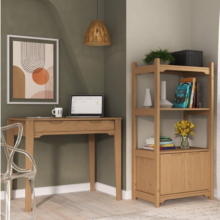 Escrivaninha 91cm com Estante 2 Portas Quebec Espresso Móveis Pinus
