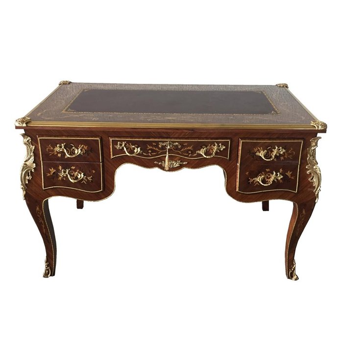 Escrivaninha Clássica Luis XV Marchetada 5 Gavetas Verniz