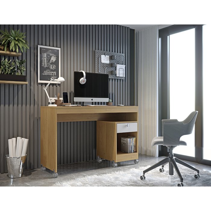Escrivaninha com 1 Gaveta Cinamomo/Off White Giga Valde Moveis