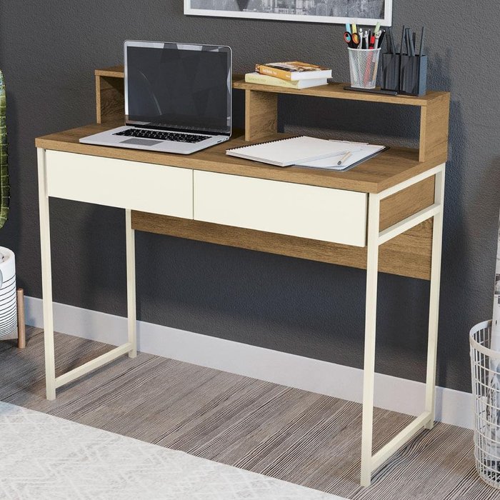 Escrivaninha com 2 Gavetas - Freijó/off White