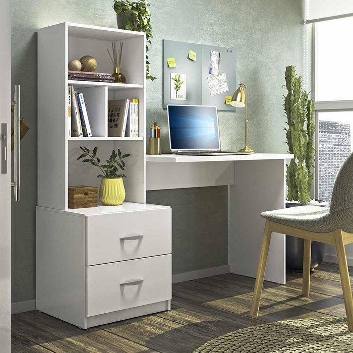Escrivaninha com Armário e Gavetas Branco Cristal Peternella