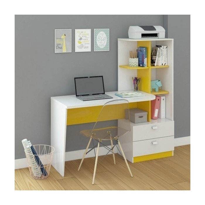 Escrivaninha com Estante 2 Gavetas Gabriela Espresso Móveis Branca/Amarela