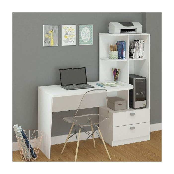 Escrivaninha com Estante 2 Gavetas Gabriela Espresso Móveis Branca