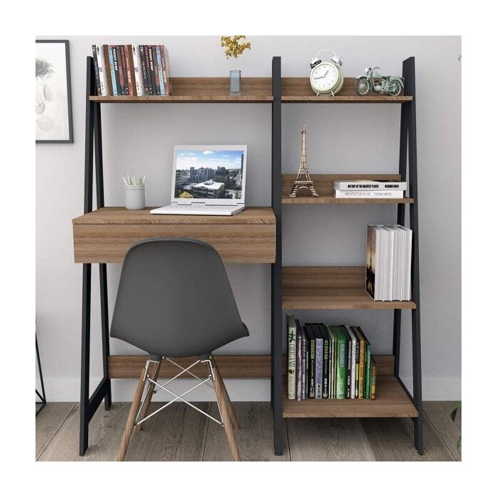 Escrivaninha com Estante Escada 1 Gaveta 5 Prateleiras Urban Appunto Castanho/Preto